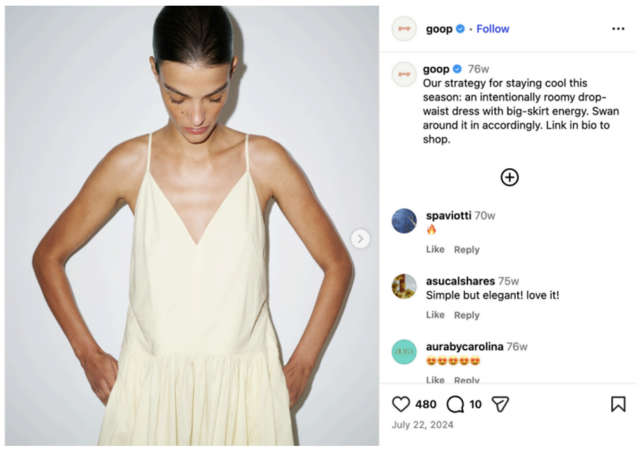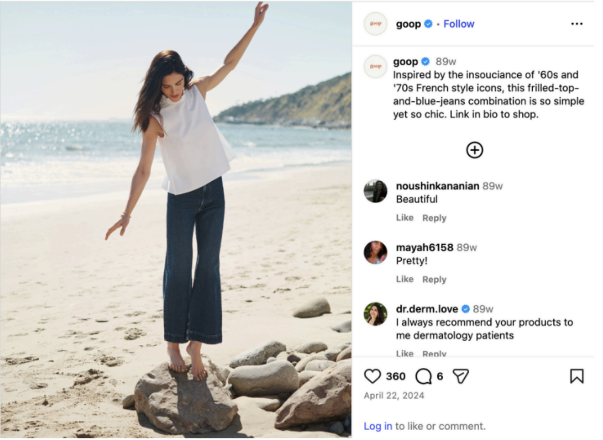 At goop, I wrote copy for all social channels, owned community management, and worked with the team to dream up new content ideas. My days included anything from answering clean beauty Q’s from customers, to strategizing a new campaign launch, to posting Taylor Swift memes before they weren’t funny anymore.